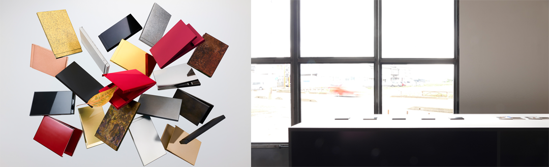2005年、武田金型製作所(現在は親会社)の事業部として活動していた私たちは、金型屋だからできる工夫を凝らし、世界的にも認められた高精度プレス金型技術を駆使し金属製名刺入れを製作。
