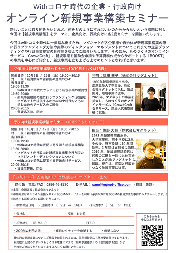 withコロナ時代に一歩踏み出すため、マグネットが各企業様や自治体が新規事業構築の際に行うブランディング方法や実際のディレクション・マネジメントについてこれまでの企業ブランディングや行政事業提案の具体例を交えてご紹介いたします。