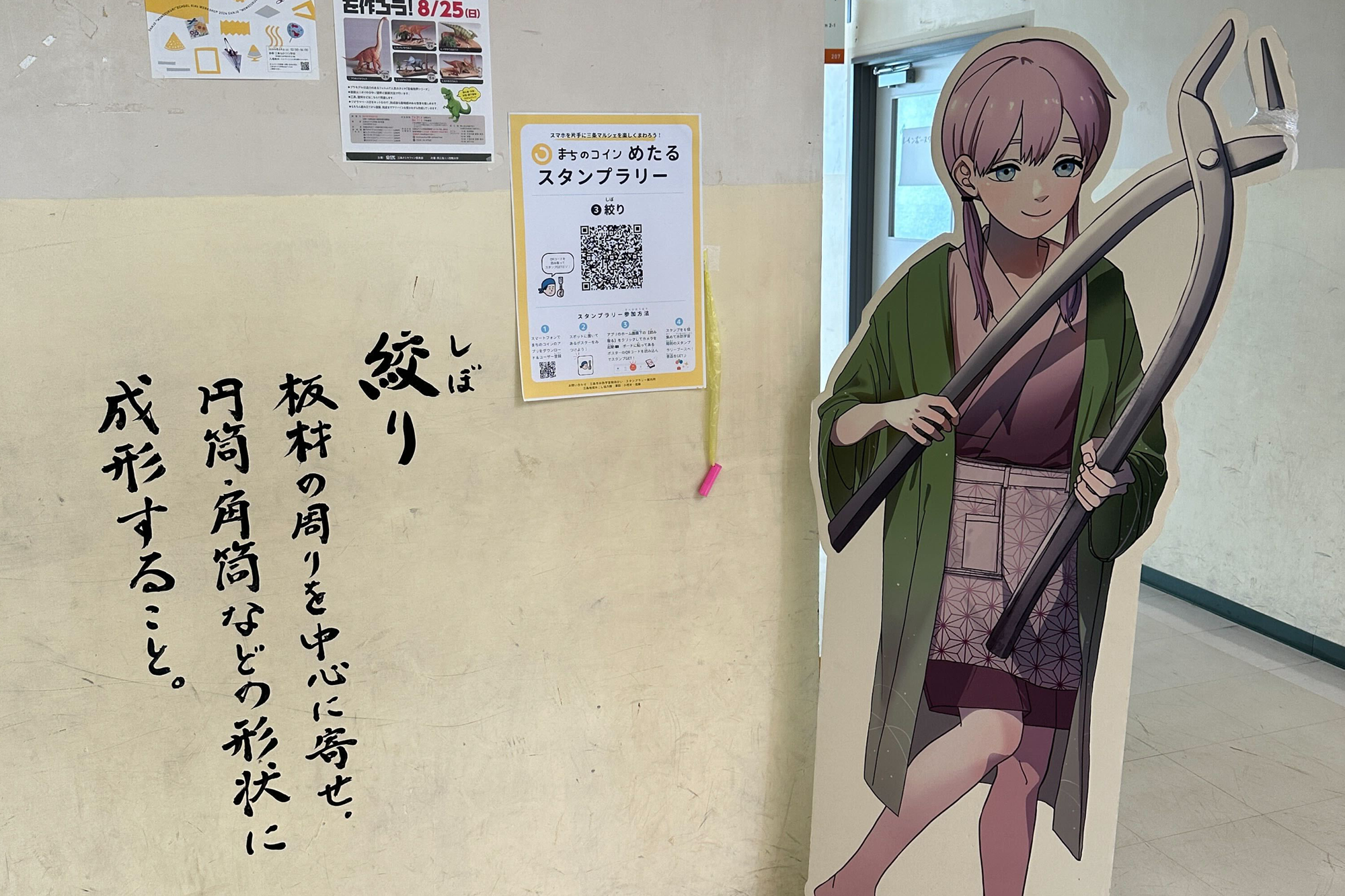 今回は学校内の壁に書かれた「こうばのじてん」の言葉をスタンプラリーのスポットとし、ものづくりにまつわる用語を学びながら館内を巡る仕立てに。老若男女問わず多くの来場者様がスタンプラリーにチャレンジしてくださり、過去最高の参加組数となりました。初めてまちのコインの存在を知る方が多かったのですが、貯まったコインを使ってくじ引きを楽しんでいただけました。今後もまちのコインの魅力を知れる体験を増やし、燕三条エリアをより楽しめるアプリとして活動に取り組んでまいりたいと思います。