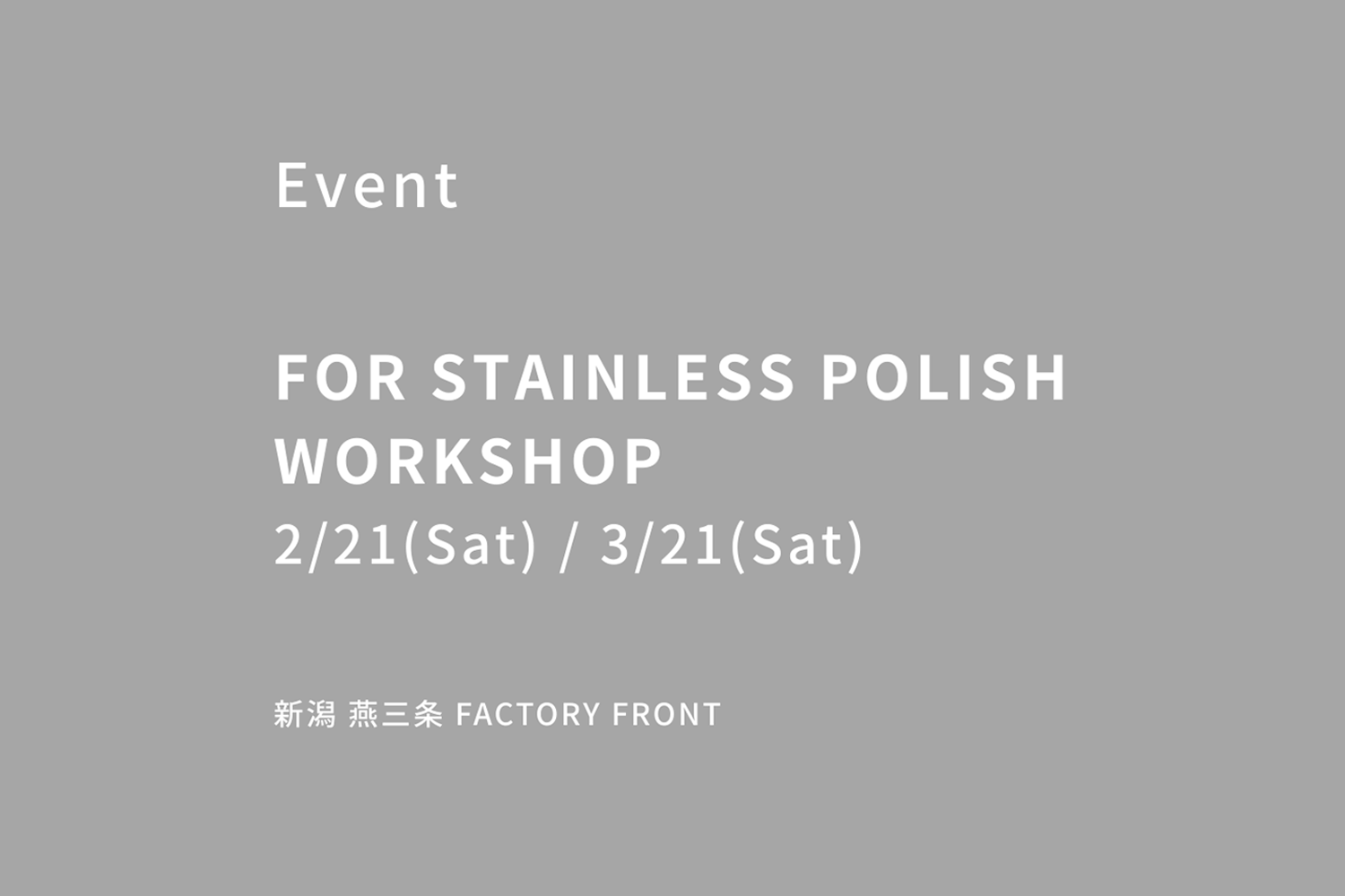 FACTORY FRONTで「FOR STAINLESS POLISH WORKSHOP」を開催いたします